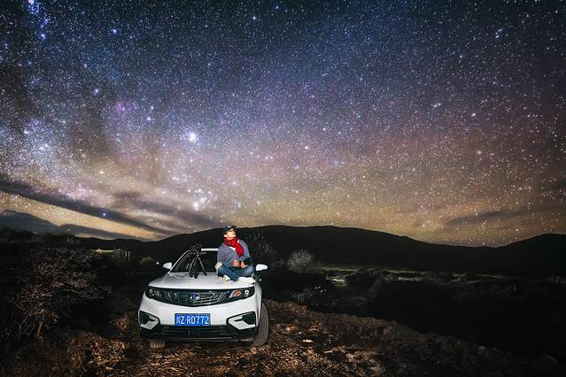 在我旅行多年的路途中一直有个梦想,那就是坐在车里透过天窗看满天银河。上一次在 新疆 我看到了一轮比盘子还大的明月。这次特意挑选月初的时候出来,只为能圆多年来的梦想。今晚能否再有银河?坐在车里关掉所有灯光。打开博越的全景车窗,银河以肉眼可见的速度一点点升上头顶。