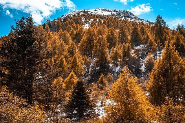 川西 已经很多年没有出现这种秋冬提前交替的情况了,我边往上爬,边喘气。偶尔会因为高反停下来休息一下。