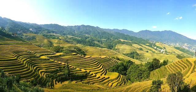 当时看到这个场景只觉得很震撼,农民真的是太伟大了,这种层层阶梯式的稻田根本无法用机器收割、播种、耕田,所以朋友们要节约粮食哦。