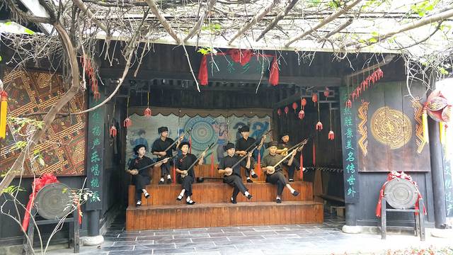 一进园里,就有几个阿哥阿妹弹着像琵琶一样的乐器唱歌,具体唱什么,我是听不懂~