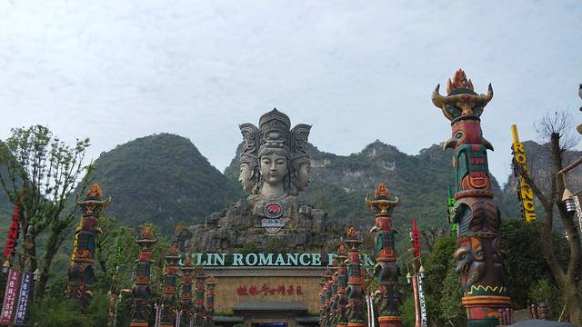 坐大巴回到酒店已是中午了,跟老板娘租了辆电瓶车开去千古情。来阳朔的朋友建议去千古情逛逛,里面有好看的,好玩的,只是没有好吃的,但是表演真的不错,不虛此行了。