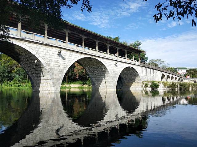 一进景区要走过一座花桥,河水很清澈,就是水草有点多,空气清新。还有当地的老爷爷老奶奶在跳广场舞和打太极,在这个地方养老,是不错的选择。