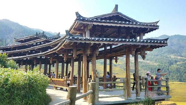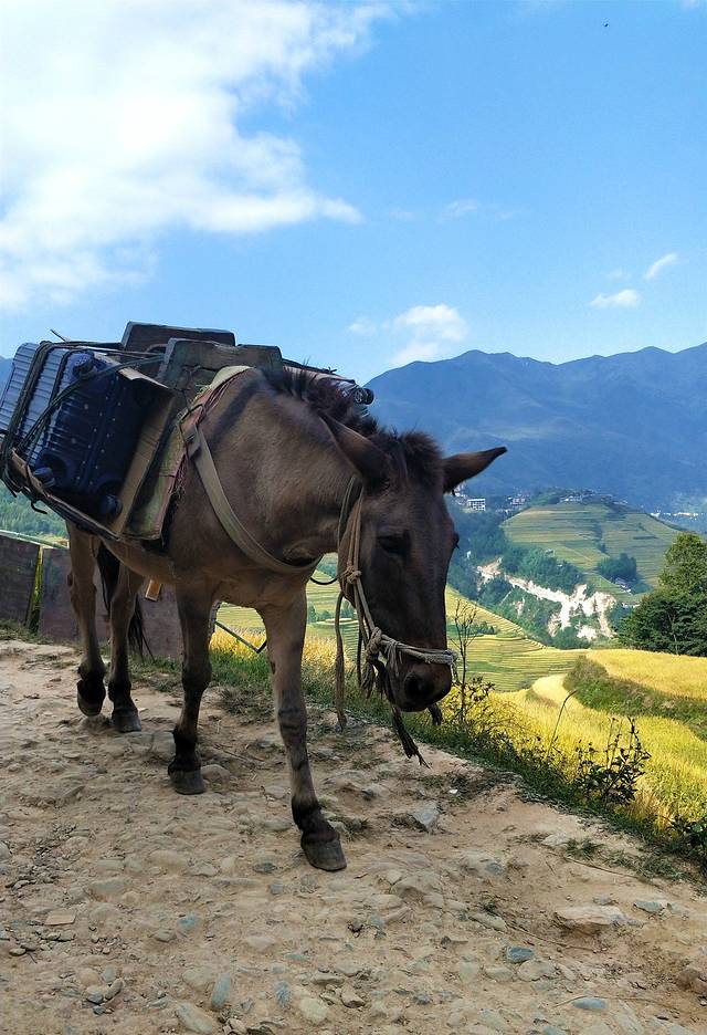 因为知道节假日人多车多,所以没有选择自驾,而且是要进山的,对路况也不熟悉所以选择了一日游的8人团,结果这个选择非常对。说是8个人的团,其实相当于是8个人拼车到梯田,因为没有导游就一个司机,司机把我们带到了景点就自由活动。只是我们没有选择索道上山,因为要排老长的队了,所以我们是徒步上山的,其实出来旅游就是要接地气嘛,哈哈(非节假日的话,建议自驾游,如果不赶时间的话建议住一晚,最好是租山顶的酒店,早上醒来看日出。路线建议:第一天坐索道上山可以俯看梯田——徒步下山[往另一座山的方向]——徒步上山顶[住这边山顶的酒店,这边山顶海拔要高一点]——第二天早上看日出——下山)下次去我就打算这么玩,梯田四季的景色都不一样,如果你没赶上稻田成熟时期去也没关系,水田,旱田,绿田都很壮观的。