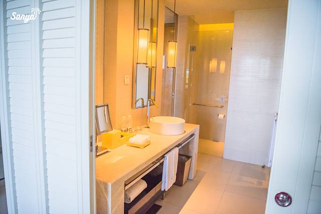 在酒店大门前会有工作人员接待,办理好入住后工作人员会很热情的帮忙把行李搬运至房间里。房间大小中规中矩,洗漱间配置齐全,大浴缸让我惊喜。落地窗配有全自动窗帘,懒癌患者可以躺在床上控制开关。透过窗可以看到对面的海岸线,视角简直太美了。