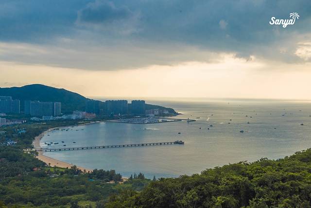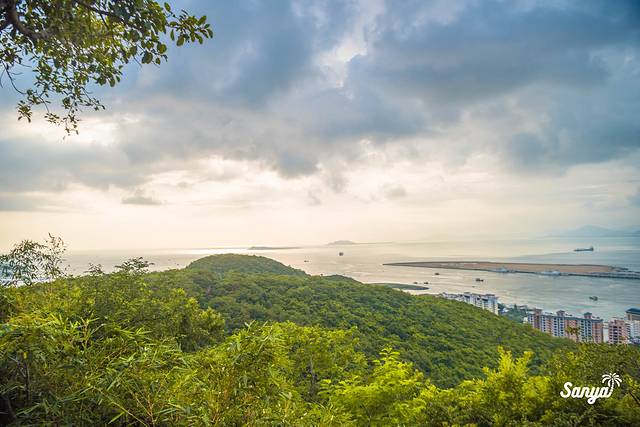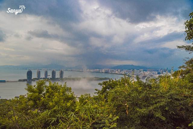 坐着电车直达山顶,阴雨天气的公园,俯瞰海面更加壮阔,可以看到整个 三亚 市区。浓厚的云层遮住了太阳,光线从远处的云里洒落在海面上,看起来像世界末日的大片场景,很壮观呢。