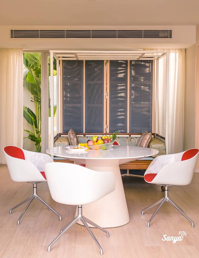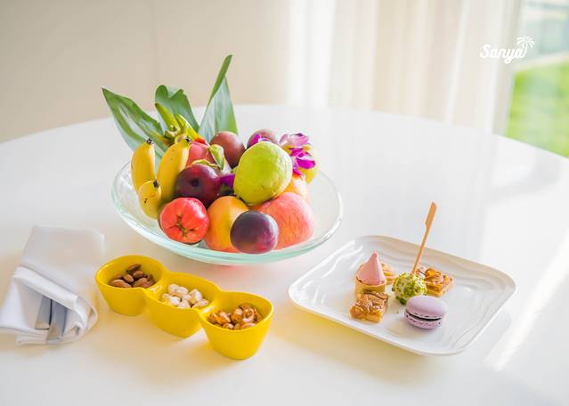 酒店会给每个房间配备甜点和应季的热带水果,坐在阳台的沙发上吃着水果,看着窗外的海岸线,面朝大海,春暖花开。
