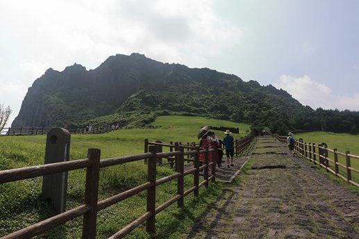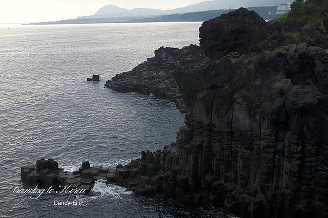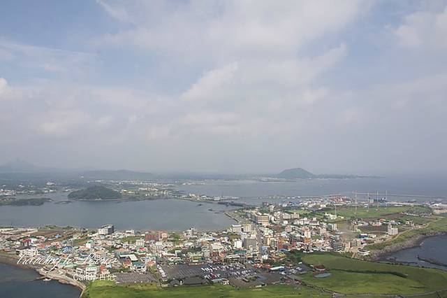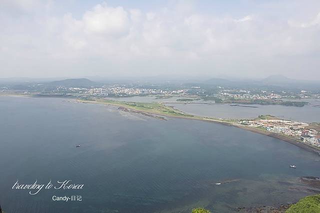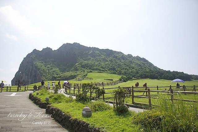 第八天的时候,我们首先去的是城山日出峰。很早的时候就出发了,但是到这里的时候也九点多了。尚未抵达的时候,远远看着就觉得风景特别美。亮点在于爬上去之后能够看到济州岛的全景。
