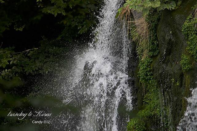 这儿就是静态的池子,当天有微风,湖面上波光粼粼的还是很好看。这个地方是我要特别安利大家来的。虽然在国内甚至有比这个要漂亮很多的九寨沟,黄果树瀑布。但既然来了韩国,与其全部暴走,真的不如看看这类景点。