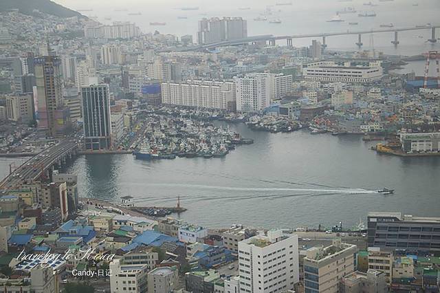 俯瞰整个釜山,有的建筑是依山而建的。总体来讲,市中心也没有超级多的高楼大厦。渔船整齐的摆放在岸边。这里的布局给我一种超级大迷宫的感觉。