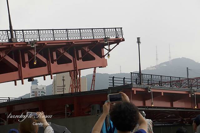 影岛大桥还是要看的。只是说时间段卡的比较近,我网上查的是2点到2点15分这个时间段内才会有一边的桥升起来。所以要卡好这个时间,并且要尽量早去,不然那后面人就会很多。