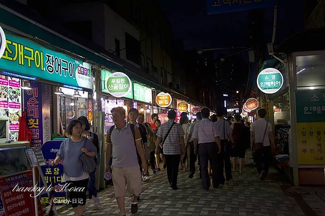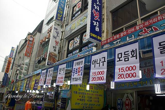 如果不是釜山电影节,估计这个地方还不会这么出名。大家可以在小吃街买点东西吃。我们没买。孩子对于我们老买小吃这件事儿都受不了了,于是就带它去了一家餐厅吃饭。