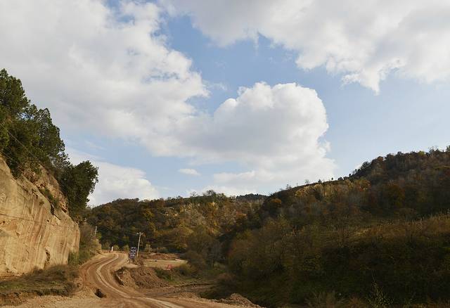 进入景区后,水泥路已经修好了一半,但到了景区更深处,目前还是黄土路,仍在进行修建铺路工程。
