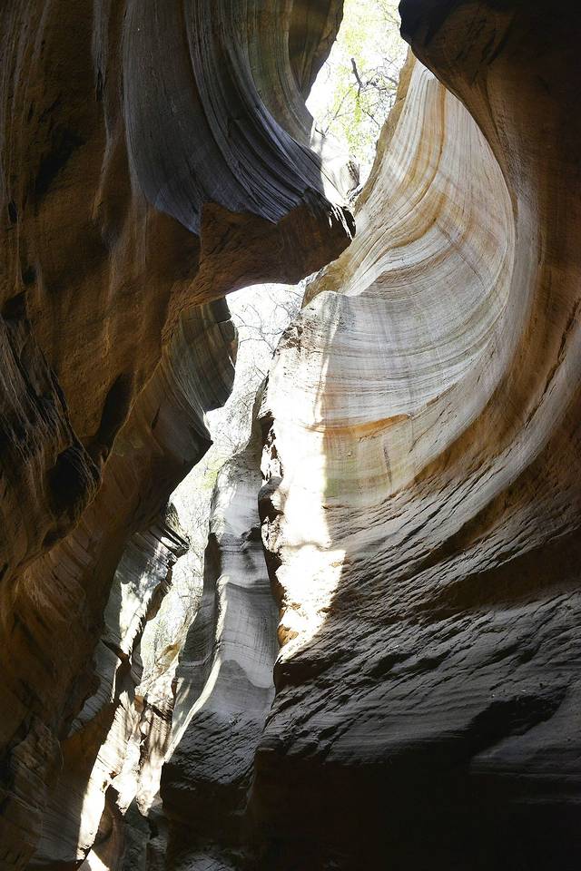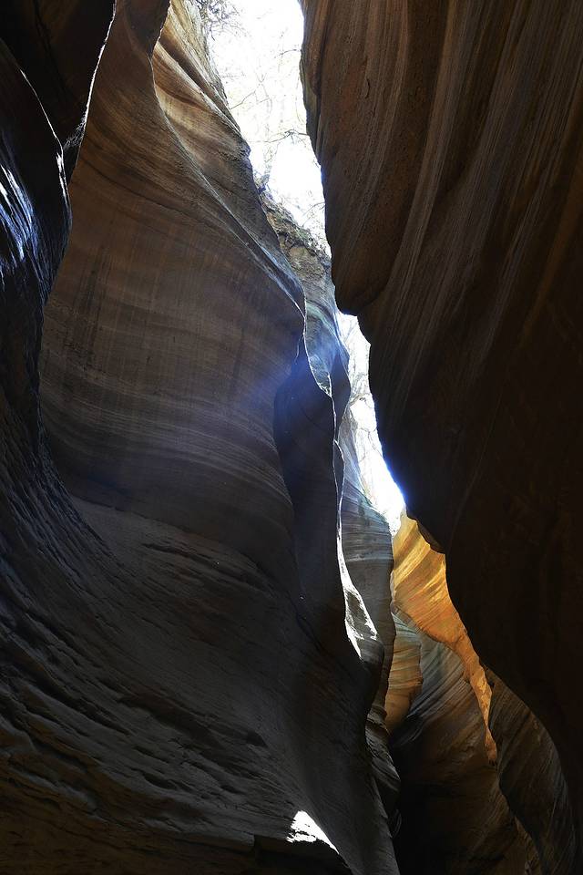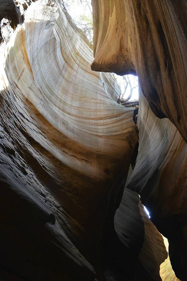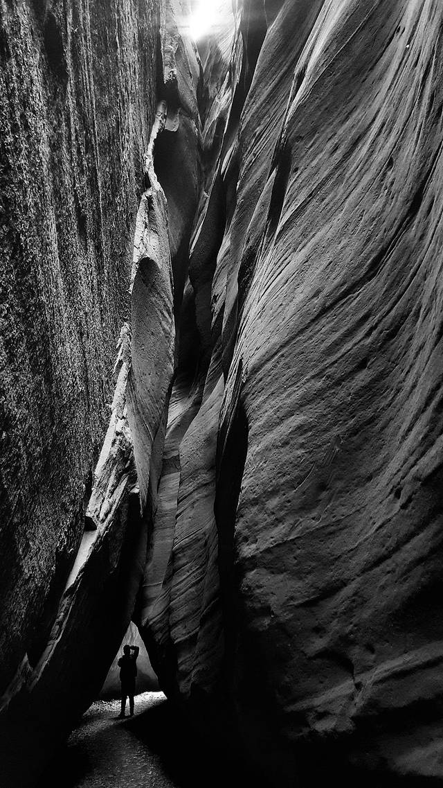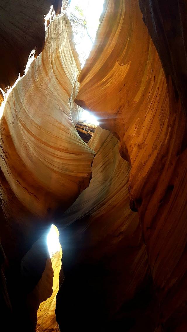 到了一线天峡谷跟前,要通过一个非常狭窄低矮的入口,才能进入到这段沟壁险如斧劈、沟宽窄如一线的景点,美中不足的是沟长度很短,不到200米吧,里面虽不见积水,但特别阴冷潮湿。