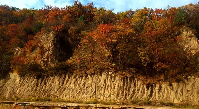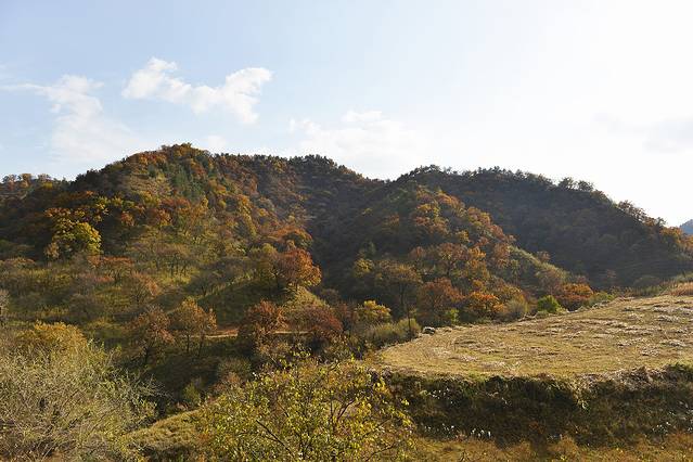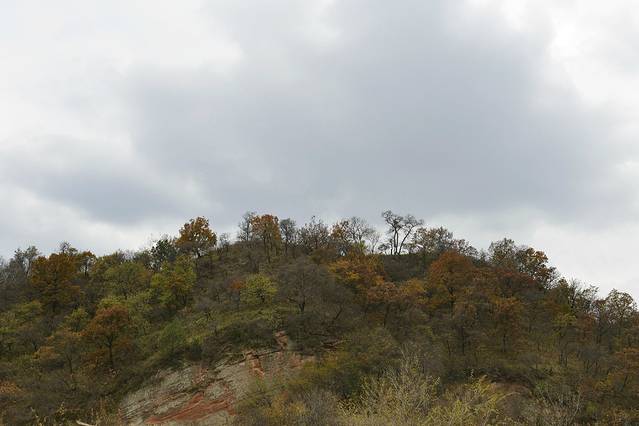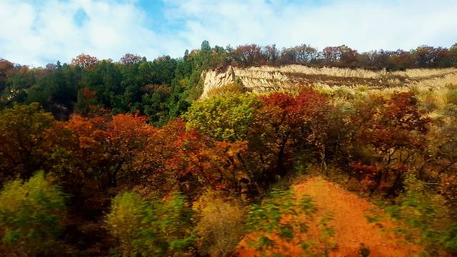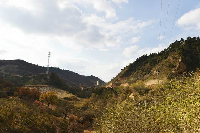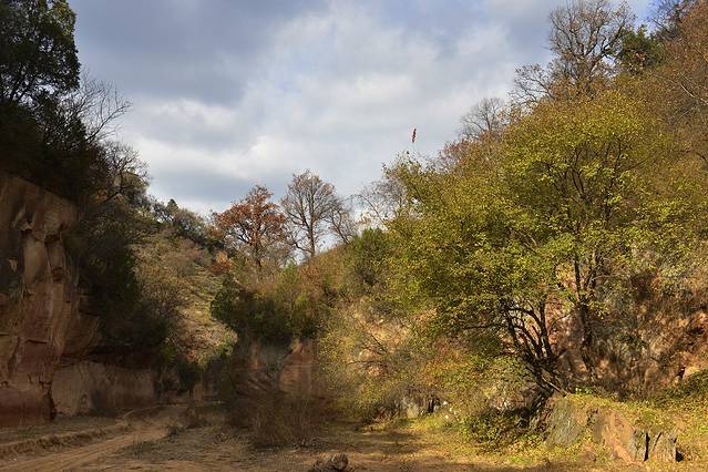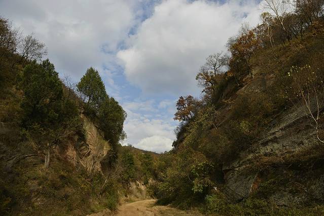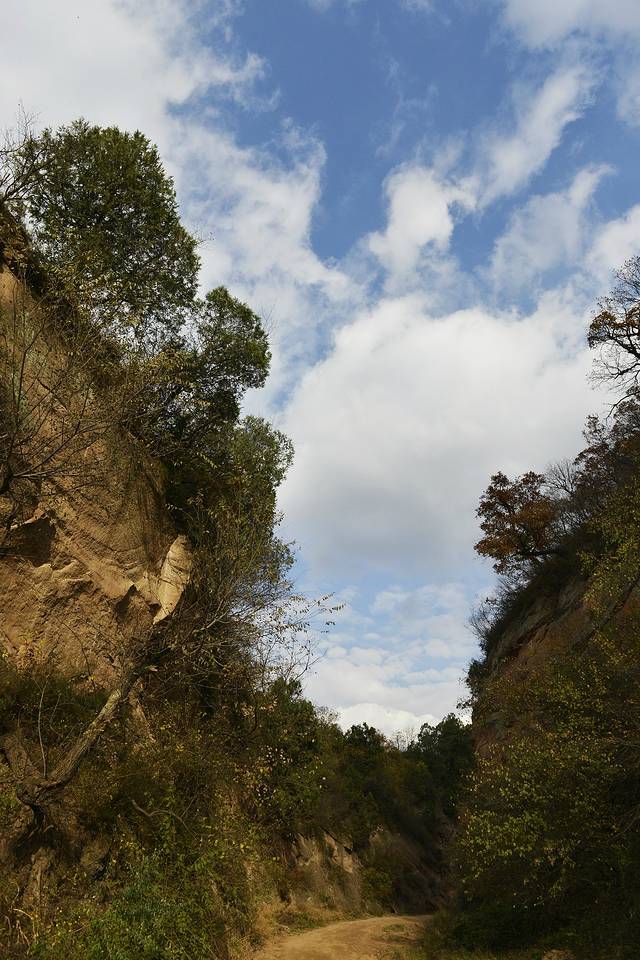不到二十分钟,我们就游完了这里,然后步行前去一线天对面的牡丹谷,继续当天的峡谷观光之旅。沿途陕北黄土坡的秋色虽不浓郁,但阴天下也充满着当地的色彩和风情。