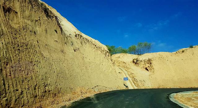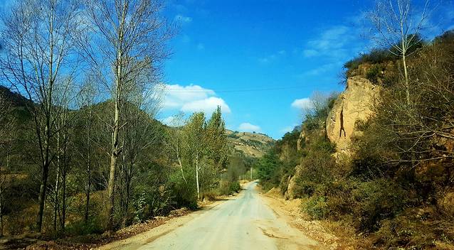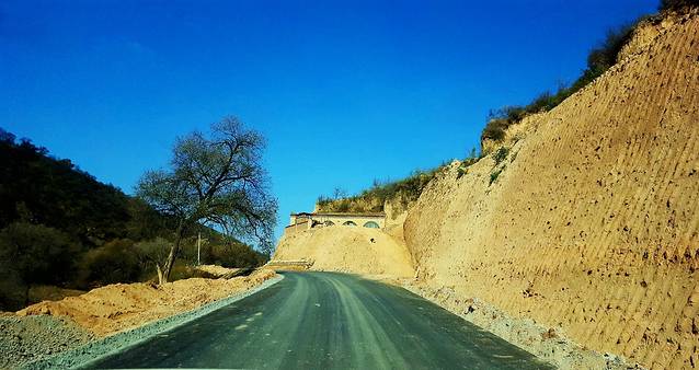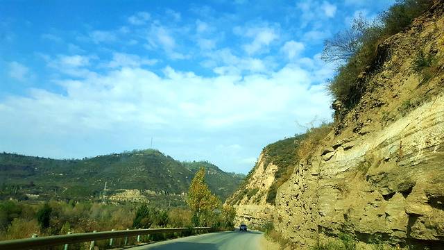 今年金秋时节国庆节后,我们终于前来陕北饱览雨岔大峡谷的奇特绝美风光。当天中午时分,我们从延安市驱车到达雨岔大峡谷景区,一路晴空万里,风和日丽,沿途一派陕北黄土高坡金秋好风光: