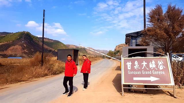甘泉大峡谷景区入口处,目前景区还未正式对外开放,但要进景区,一人需50元的坐车费。如果自驾游,每人交50元就可开车进去游览其中的景点。