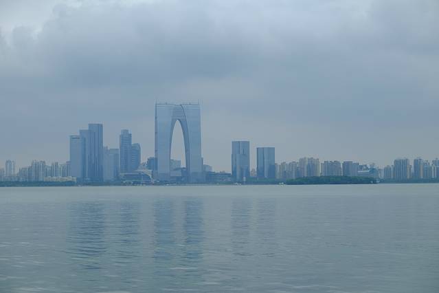 第二次去苏州,是在今年暑假。那会正在找工作,每天都是满满的压力,有个周末,土哥说带我去逛逛散散心。我们早晨从上海出发,到了苏州后快到中午了,所以就到圆融时代广场一家川菜馆吃了饭。经过上次来苏州被甜伤的经历后,我们就直奔川菜馆了哈哈哈~吃完午饭步行到金鸡湖附近。金鸡湖是我强烈推荐的一个景点,摩天轮乐园就在湖畔,可惜当天闭园,所以就没有坐上摩天轮,下次一定要去补上!!!金鸡湖的景色很美,湖面平静,波光粼粼宛若一面大镜子,湖上有湖心亭,对面就是苏州标志性建筑东方之门,俗称秋裤楼,很是雄伟壮观。顺着金鸡湖一路走走停停,湖边的休憩栈道旁,有很多家长带着小孩子出来散心,好不惬意。