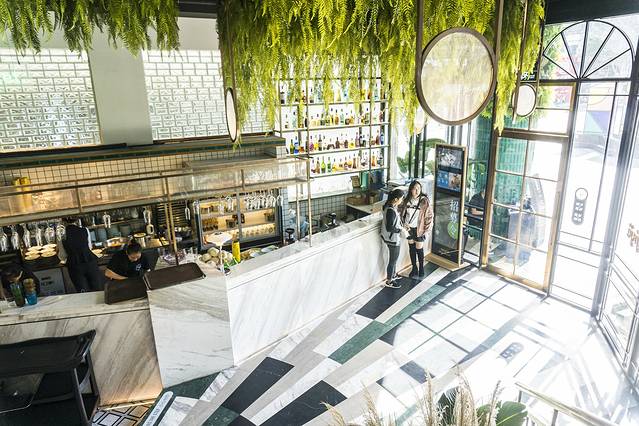 店铺的装修就已经是深得人心,简约的清新风,亮丽的色彩,统一的森林色系,视觉感官上非常的舒服,这完全就是Ins风格的装修设计,不愧是网红餐厅,跟得上潮流。