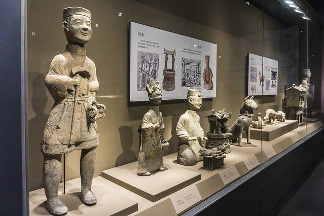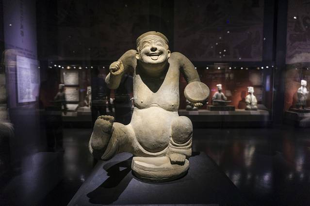 又是非常喜庆的陶俑,这些多为乐器操作手,这个和上午在 四川 博物馆看到的那个陶俑很是相似啊。