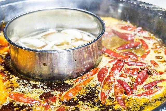 他们家一共有两种锅底,经典锅和传统锅,服务员阿姨操着浓浓的川普和我介绍了一番(不得不夸下他家的服务员,都是非常热情,而且相当的勤快,做事非常的麻利),嗯,讲讲太快我也没听懂,反正我是第一次来,你就看着上吧,给我推荐一个,最后上来的好像是经典锅,也是大部分的选择,看着满满辣椒的锅底,味蕾就开始跳动,经典锅没有我想象中的辣,可能因为我特能吃辣吧,不过味道是很赞的,吃的很爽。