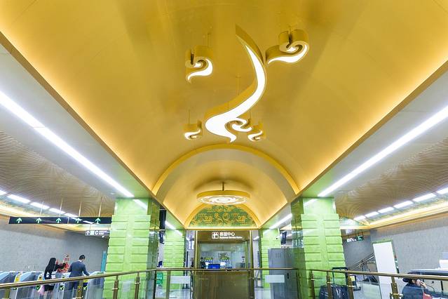 坐地铁前往金沙遗址博物馆,7号线金沙博物馆站,地铁站也是非常有特色,配合了金沙博物馆的文化主题,也是告诉你来这里就对了。