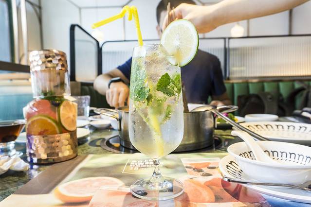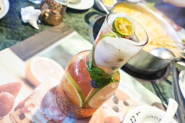 他们家的饮品也是同样的精致,就餐的同时,档次也是抬升了不少,这个西柚缤纷气泡是他们家的夏日网红款,用我的话说就是水果气泡茶,里面真的是有很多的水果。