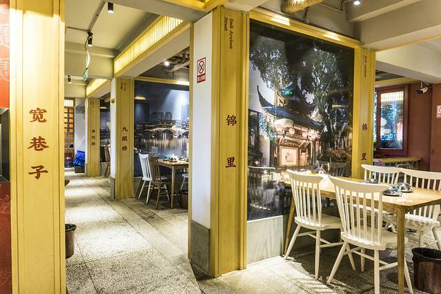 成都 吃客,位于致民路上,距离春熙路非常近,骑着共享单车就可以到达,地铁3号线新南门B出口,出来往前走就能看到了,来的还算早,不用排队直接上二楼,店铺装修精致接地气,楼梯走道的设计,餐具碗筷的排列图案,簸箕、竹篓、小板凳,印刷术的字体排列,浓浓的传统经典风格,最有意思的还是要属大厅的设计,每个转角都是 成都 著名的旅游景点,宽窄巷子、锦里、九眼桥、春熙路、鹤鸣茶社,一品天下等等,除了文字还有配图, 成都 之旅还没开始,就被墙上的景色所吸引,做为来到 成都 的第一站,选择 成都 吃客看来是正确的。