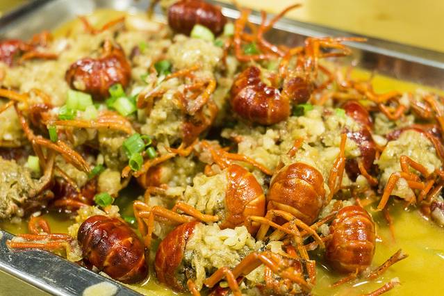 除了卤煮小龙虾,也有其他的小龙虾,泡椒小龙虾,酸辣酸辣的,蒜蓉小龙虾,是去掉了虾头的小虾球,对于不怎么吃辣的朋友,这道蒜蓉小龙虾推荐你哦,这个蒜蓉很香,我直接这么吃都还吃了不少。