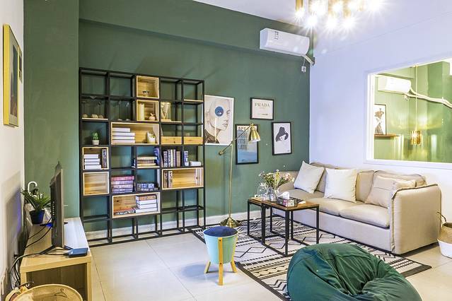 提前通过网站预付房费,房东会和我联系,告诉我注意事项,前往民宿的路线,还要收取押金。从春熙路地铁站出来,也就步行五分钟便能够到达,这家民宿位于一栋大楼内,旁边是另外一家酒店,环境还可以,大门是密码锁,房东提前告知密码,自己办理入住即可,打开房门,装修和之前网站的图片还是差不多的,细节的地方会有些差别,装修整体是偏森林色系,高冷的配色,非常适合男生入住 ,两个卧室一个客厅,配备卫生间和厨房,家电也是齐全的,两个人住空间还是很大,我特别喜欢客厅里的那个懒人沙发,躺在沙发上看电视真是享受。
