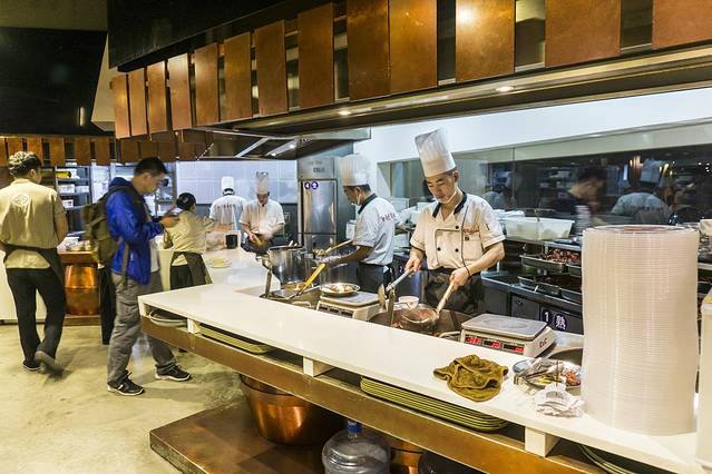 这家店同样是位于二楼,走上楼之后穿过一家火锅店,他们家就位于拐角处,走进餐厅,先看到的便是操作台,各种龙虾和卤味,美味看得见。