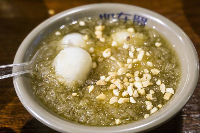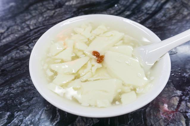 冰醉豆花,他们家的主打,不过因为是早上的原因刚出锅,所以本该是冰凉的冰醉豆花,而我们吃到的是暖热的冰醉豆花,可能又是另外一番风味吧,豆花其实比豆腐脑更加的滑嫩,入口就能滑入喉咙,加入了酒酿,所以是冰醉,微微的酒香,更像是一道甜品,很好吃。