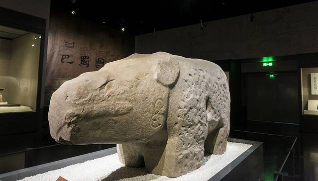 石犀牛,这个也算是网红文物了,前段时间还曾上过新闻呢,最早是埋藏于天府广场之下的,相传和李冰治水的石犀相似,有镇水神兽的功能,但具体是不是同一只还在考究,前段时间 成都 暴雨,于是就有人调侃,是因为考古学家把石犀牛挖出来的原因,要求将石犀牛重新埋回去,也是好笑。今天终于见到了这个石犀,还真是蛮可爱的造型。
