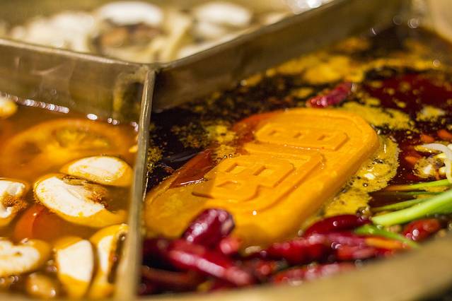 连续在 成都 吃了几天,虽然能吃辣,但是身体还是诚实的,也让胃能够缓一缓,今天没有点全辣的,点了三拼锅,菌菇、番茄和老火锅,牛油做成了蜀国令牌,看着他慢慢的溶解,非常有意思。