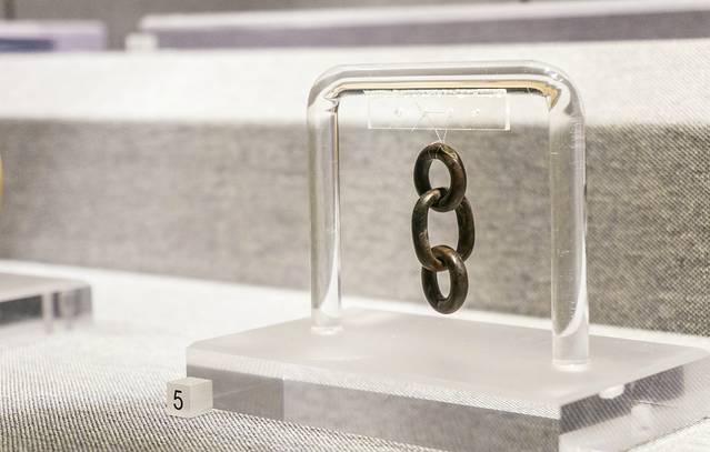 第三部分,天地不绝,是陈列馆内一个较大的展厅,里面也是收藏了整个金沙遗址博物馆绝大多数的文物,整个展厅的灯光非常暗,通过下垂的铁网帘将空间分成了几个区域,这样的设计我很喜欢,隐约中带着神秘的感觉,每个区域都是不同的主题,金器、铜器、玉器、石器、象牙、卜甲等文物集中在各个片区展示,讲述了古蜀国宗教祭祀的文化。