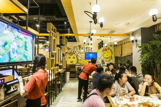从民宿出发走到IFS和太古里之间的那条马路,然后沿着马路往外走,在十字路口的地方就是灯光阑珊处,对面全部都是各色餐饮店,大龙燚就是其中,走过红绿灯,大龙燚在二楼,巨大的标志还是很容易找到的,乘坐外面的观光电梯到二楼,迎面而来的火锅味,刺激的味蕾,令人兴奋。