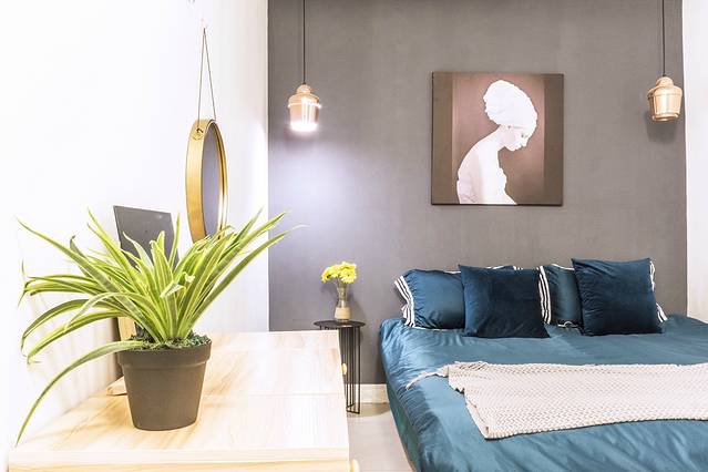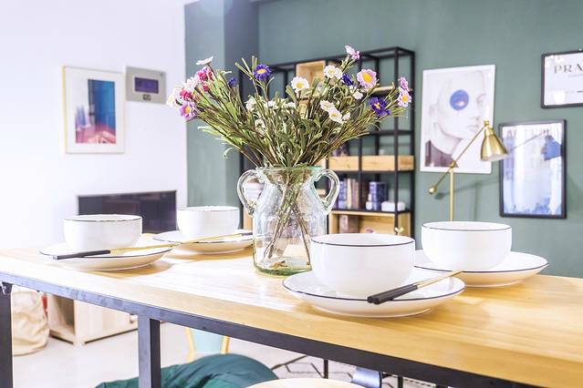 我更喜欢他们家的客厅,抽象的油画,是浓浓的艺术气息、缤纷的‘鲜花’,充当了自然的氛围,长方桌高脚凳本来是小资格调的餐桌,却被我当成了办公桌,嗯,也是恰到好吃的利用~ ,时光印记,住在这里好像时间都慢了一些。顺便附上房源链接 http://www.mayi.com/room/852699488?d1=2018-09-26&d2=2018-09-30# ,其实下载蚂蚁短租APP后直接在里面搜索 成都 地区的‘时光印记’就能找到的。