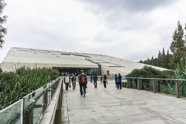 参观完遗迹馆之后再参观陈列馆,据说两个建筑是呈现天圆地方的设计理念,不过航拍才能看清楚,在地面上唯一的感觉就是这里的绿化非常好,蚊子也是蛮多的,特别容易招蚊子的我,在这里就是中招了。