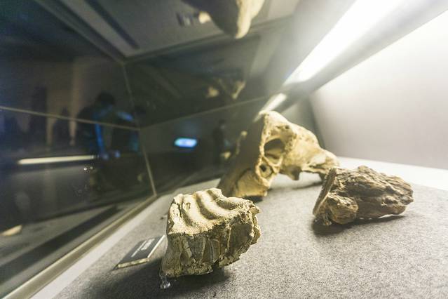 这是一个千年古木的树桩,加上发现的那些动物骨骼,说明在曾经的这片土地上,这里是一个水草丰美,植被茂盛的地方,这个树桩是用巨大的玻璃罩住的,从上往下看很震撼,树桩盘踞的范围很大。