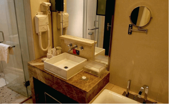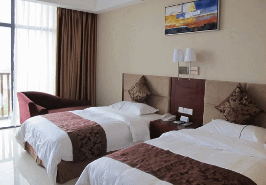 住在映雪酒店,标准间,厚实松软的被子,看起来就很暖和,有个大浴缸、雪花形状的紫色香皂,沐浴露洗发乳、牙膏牙刷、厚厚的浴袍、热水壶、吹风机等一应俱全,舒适方便贴心。