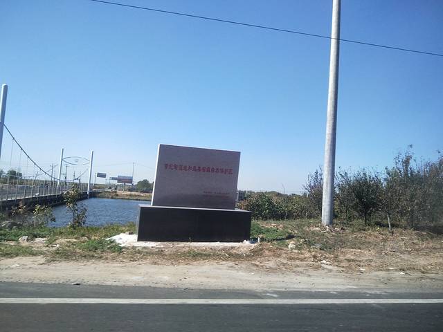 这块牌子证明曹妃甸湿地和鸟类自然保护区到了。坐车上拍的,照片有点歪