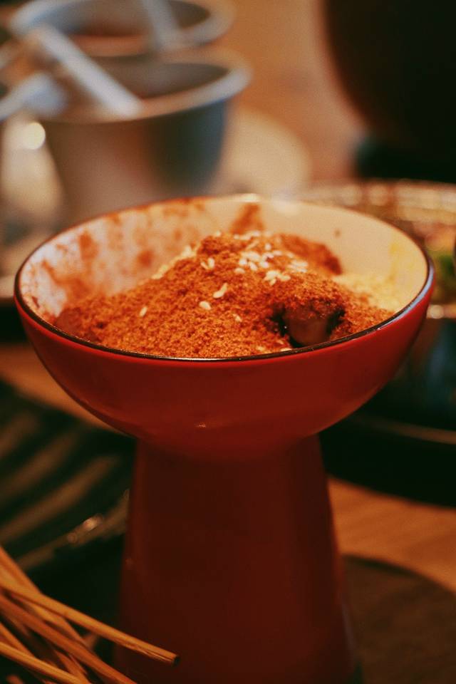 还有鸡蛋羹也是!在我心中和串串半毛钱关系没有的鸡蛋羹下锅烫烫好吃到真的要哭出声,一开始马老师推荐的时候还不太相信,后来一个人反复去加鸡蛋羹直到马老师跟我翻白眼都停不下来