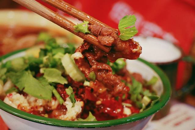 他家的牛肉特别好吃,我们反复多加了三次,每次都是一大把一大把地加。