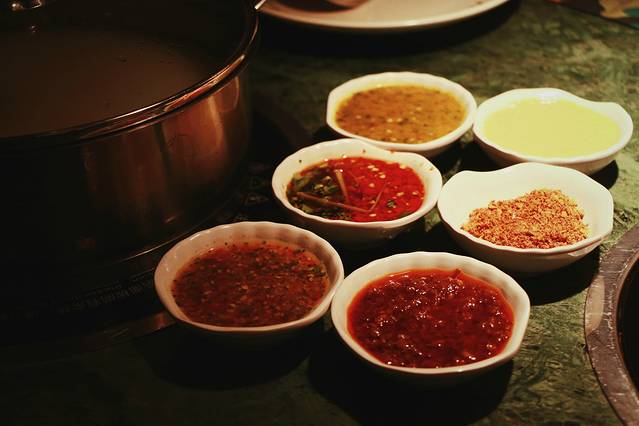 辣椒、蒜蓉、香菜、小米椒、香油什么的都搅匀,吃完谁都别嫌弃谁味儿重,大家毕竟都是一起吃火锅的交情了嘛