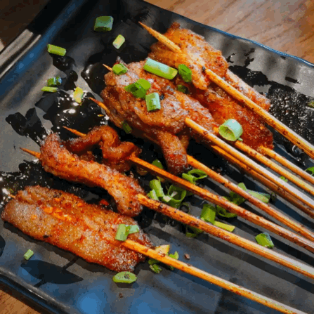 烤五花肉可谓是这次的惊喜,本想着小小的一片就当小菜了,结果我一个人就连吃七八串停不下来,再在其他三个女孩的笑骂声中连连赔罪再多点了十串