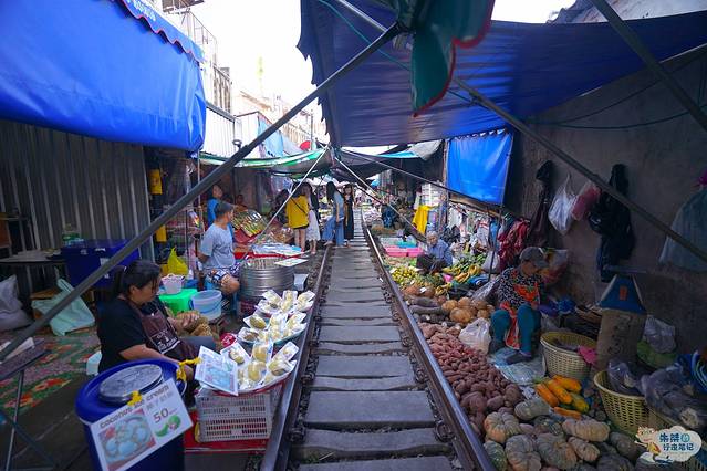 一早就听说美攻铁道市场是世界上最危险的菜市场,在去之前就在想这到底是有多危险啊,这里的危险系数只有真正的去了之后,看到火车经过你才会明白。虽然前往美攻铁道市场的路途会比较远,但是好在一路都很平坦,到达都是很顺利的。早上六点半从住的地方出发,到达美攻铁道市场刚好是八点钟,可以稍微逛一会市场,然后静静的等待8:30的第一趟火车。