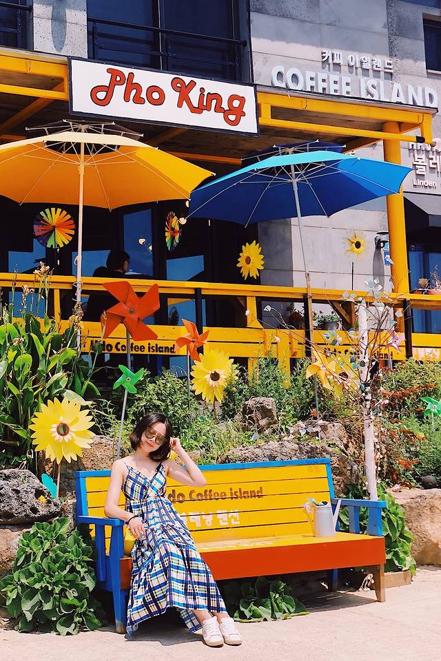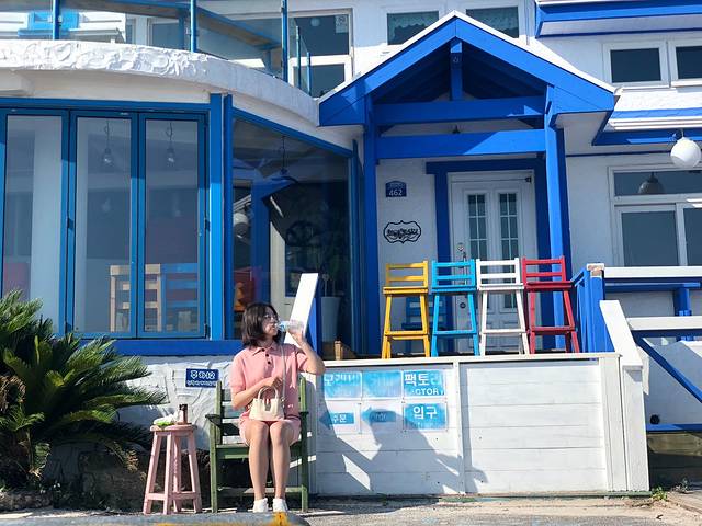 沿路都是面朝大海的咖啡店,每一家都有自己的特点,济州人可能天生就是色彩的大师,用不同的明亮的颜色装饰房屋,好似一串彩色项链将月汀里围了起来