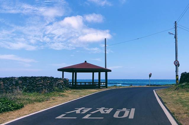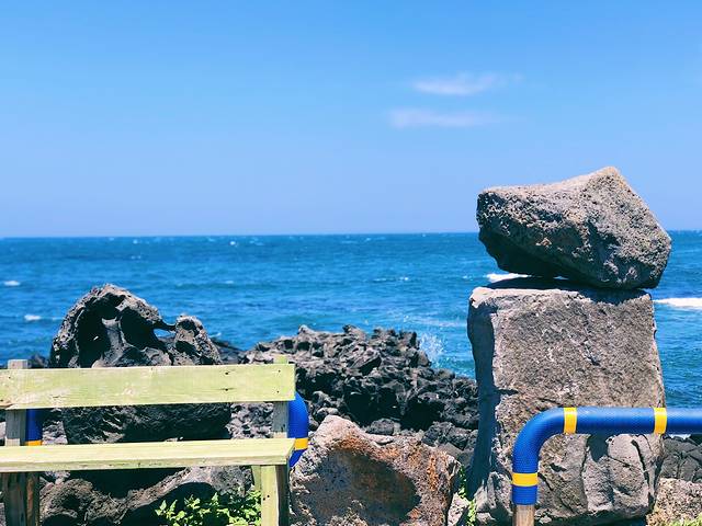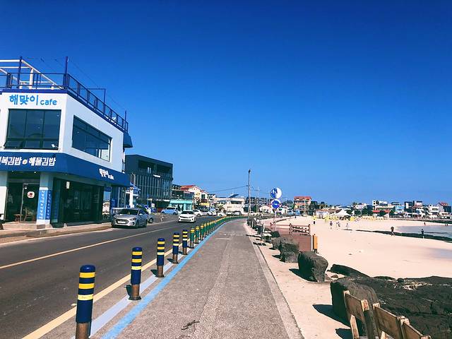 月汀里,几乎是在 济州岛 的最北面,这里距离市区要将近两个小时的车程,也正是因为这样游人很少,大多是开车过来度假休闲的当地人,在海边踩踩水,咖啡馆吃点甜品,或者索性吹吹海风发个呆,将个人放松下来,让心跳随着海浪起起伏伏,好不惬意自在,连路上过往的车辆都成了独一无二的风景。