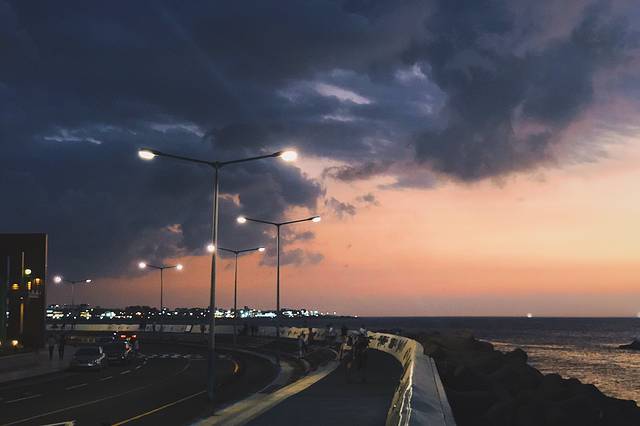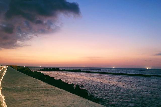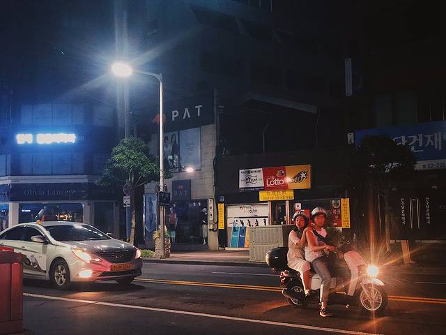 【陆】在涯月沿海公路,吹着海风,看一场海上的粉色落日,看看这 济州岛 的日转夜,看看这川流不息的马路,来往不停的行人,还有华灯初上的夜幕城