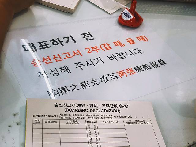 路上颠簸了2个小时,终于到了成山码头,跟着人流找到了牛岛的售票处,一定要记住轮船的往返时间,错过最后一班可就出不了岛了~