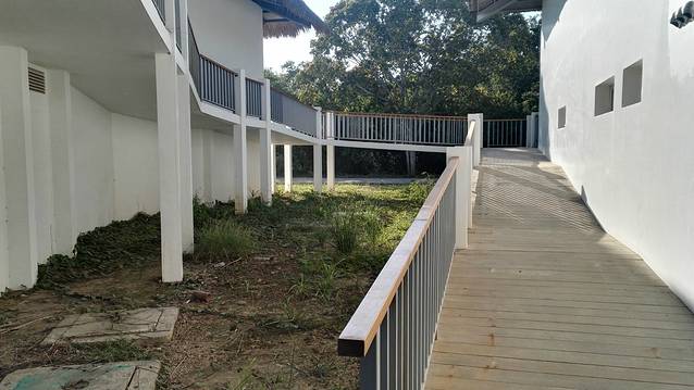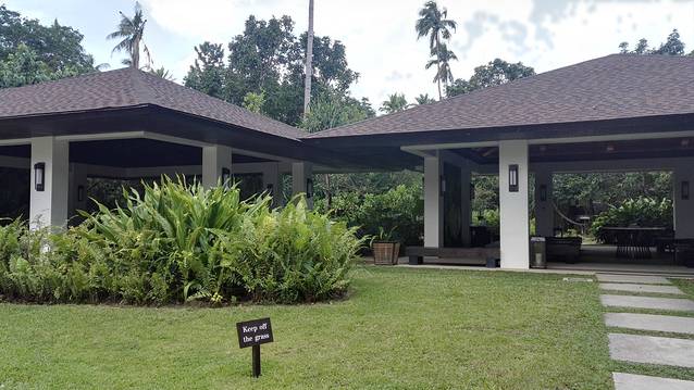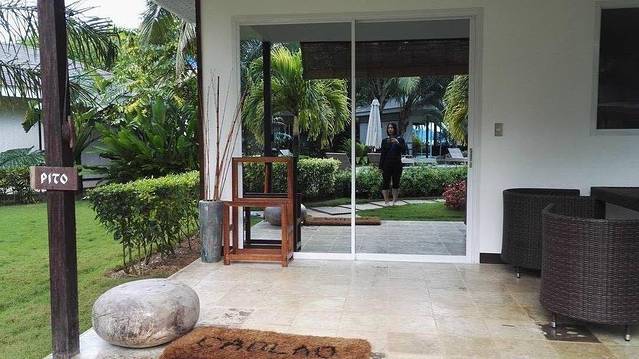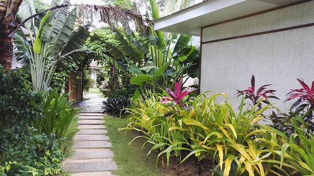 还没决定是否潜水,继续对比价格。逛逛镇子看到漂亮园艺就拍拍花花草草。这一天我拍了好多的花花草草。然后逛到学校附近的CENTRAL OFFICE看到有VAN到LIO BEACH(8点起整点由CENTRAL OFFICE出发,由08:30AM起,LIO BEACH半点就有车回来镇中心直至23:30)。问问,是免费的,反正我又没有其他事情做,然后就上车去来。LIO BEACH满足我对沙滩的大部分想象:古老的丛林,安静美丽的白沙滩,躺在树荫下的躺椅,吹吹海风,闻着花香睡一个午觉,睡醒租个KAYAK(200P两个小时)或者PADDLE.在非常平稳的海面划KAYAK,人少,设施新,觉得整个沙滩和海面是自己的感觉非常好。这个沙滩,看得出被投入很多资金吸引旅客。这里的设施很新,餐厅价格200P-350P一餐还好啦。建筑美,这里有个艺术馆的楼梯好漂亮。这里有许多漂亮的花花草草,还有可爱的小松鼠喔。